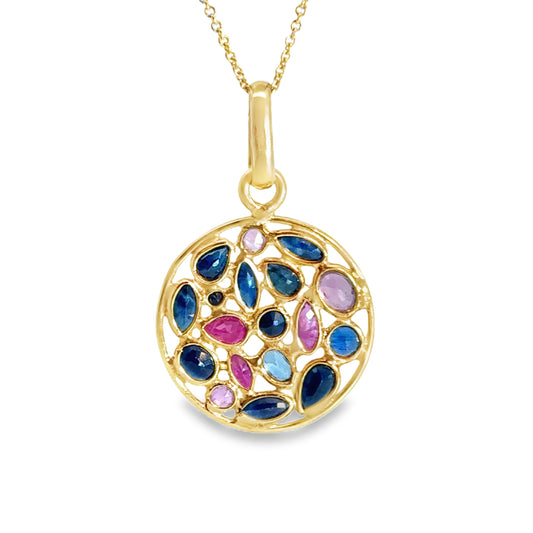 14K Yellow Gold Ruby & Sapphire Colorful Pendant