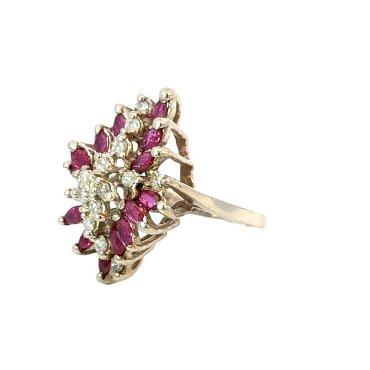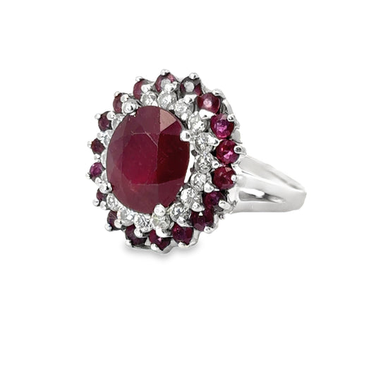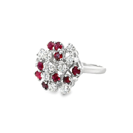 18K White Gold Ruby & Diamond Cluster Dome Ring