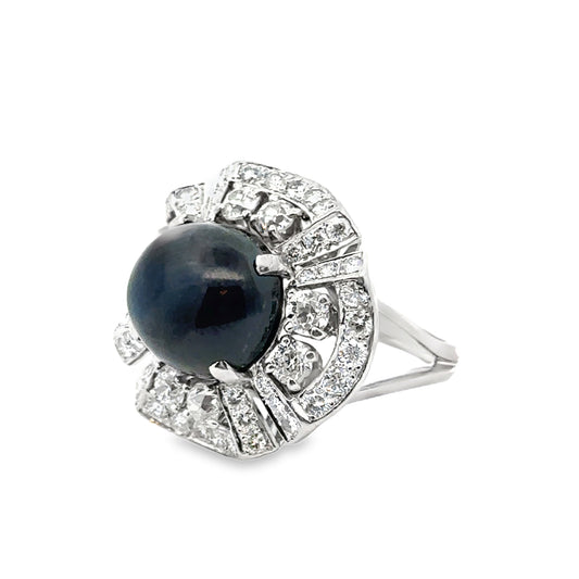 Platinum 11.26ct Cabochon Sapphire & Diamond Flower Cocktail Ring