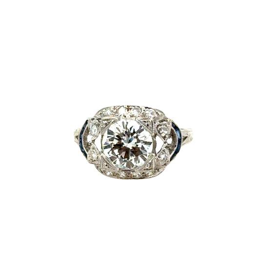 Art Deco Platinum Diamond & Sapphire Ring, c.1920s