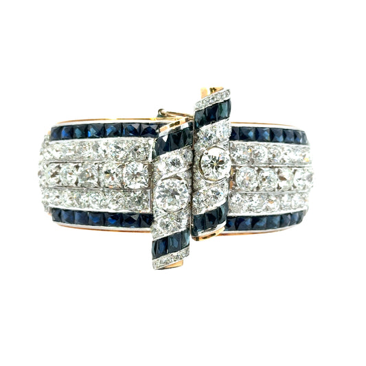 Platinum & 18K Rose Gold Art Deco Sapphire and Diamond Bracelet