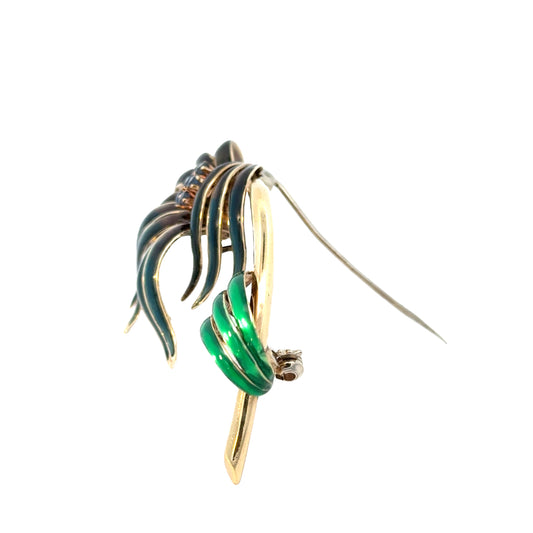 14K Yellow Gold Sapphire & Enamel Tropical Leaves Brooch