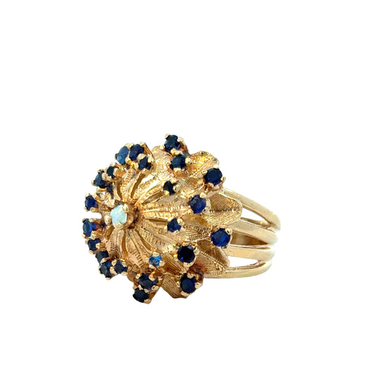 14K Yellow Gold Sapphire & Opal Floral Dome Ring – Vintage Design