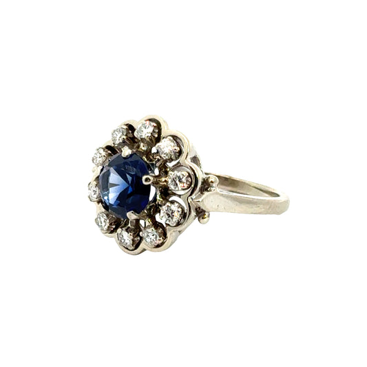14K White Gold Romantic Sapphire and Diamond Flower Design Ring
