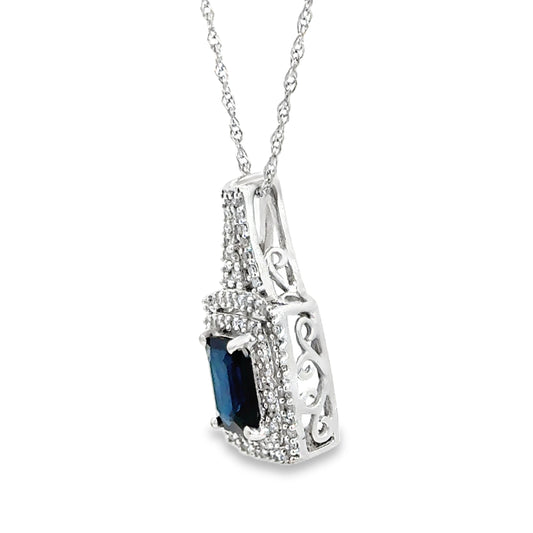 14K White Gold Midnight Elegance: Sapphire & Diamond Halo Pendant