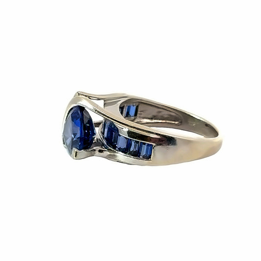 18K White Gold Tanzanite & Diamond Baguette Ring