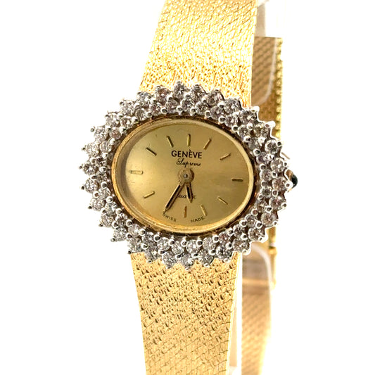Vintage 1960’s Italian Genève Diamond Watch in 14K Yellow Gold