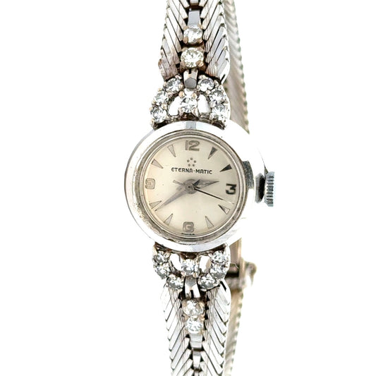 Eterna-Matic 14K White Gold Diamond Watch – Diamonds – Mid-Century Swiss Elegance