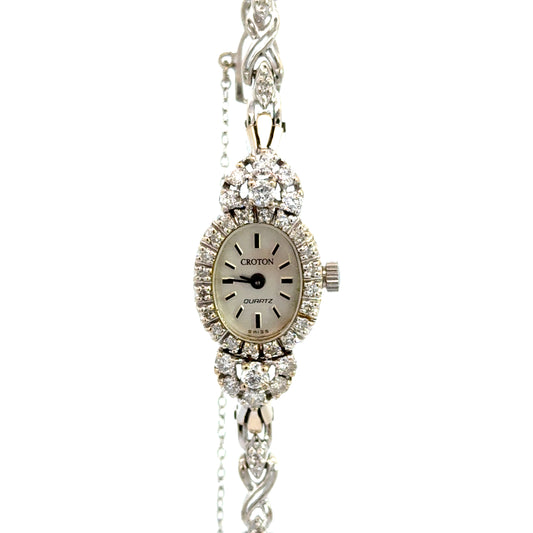 Vintage Croton Diamond Bracelet Watch – 14K White Gold - Art Deco–Inspired