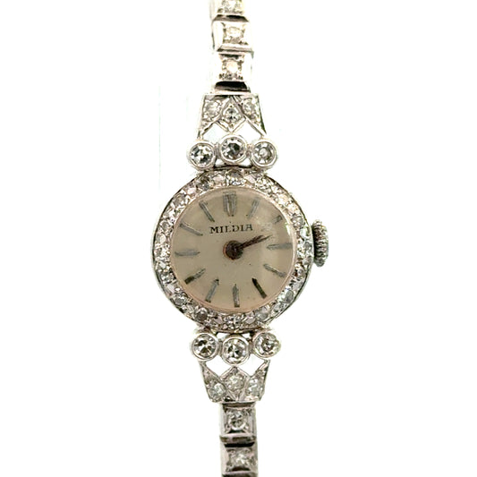 Platinum Mildia Diamond Bracelet Watch – 1920s Art Deco Elegance