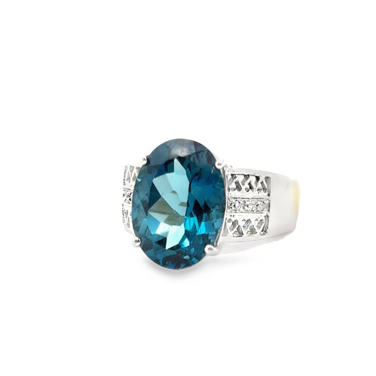 Large Oval Blue Topaz & Diamond Accent Ring in White Gold