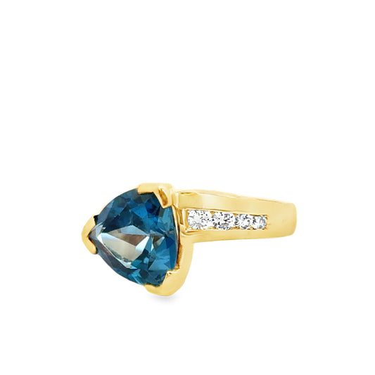 14K Yellow Gold Trillion-Cut Blue Topaz & Diamond Ring – Modern Statement Design