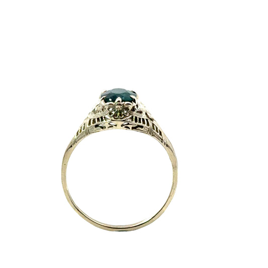 1920’s 14K White Gold Filigree Blue Topaz Ring – Art Deco Elegance