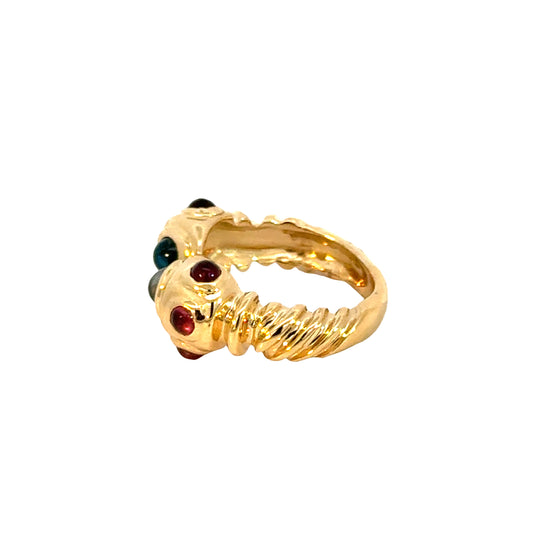 14K Yellow Gold Garnet & Blue Topaz Double-Head Ring – Unique Design