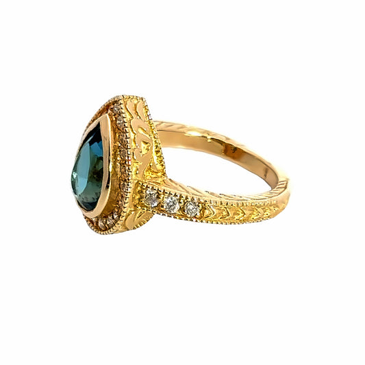 18K Yellow Gold Paraiba Blue Tourmaline Diamond Ring