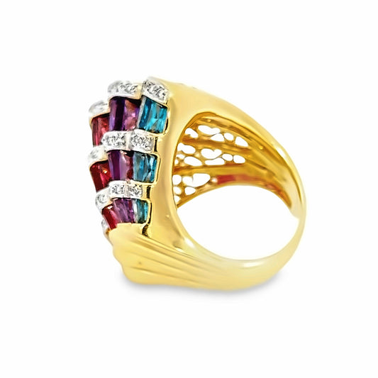 18K Luxurious Vintage Multi-Color Tourmaline & Amethyst Gold Ring