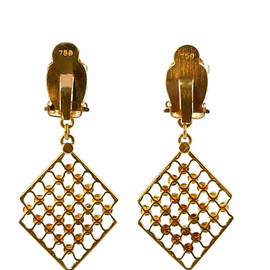 18K Yellow Gold Dangling Turquoise Clip-On Earrings