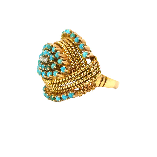 18K Yellow Gold Turquoise & Diamond Cable Statement Ring