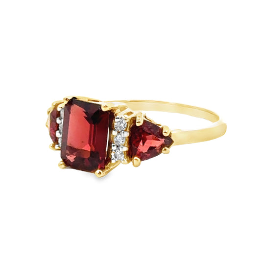 Timeless Yellow Gold Three-Stone Garnet & Diamond Ring