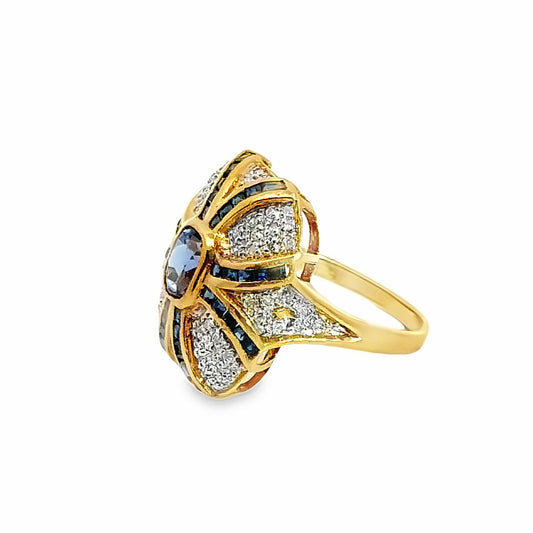 Retro 18K Yellow Gold Sapphire & Diamond Cocktail Ring