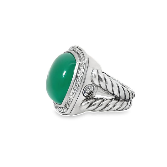 David Yurman Silver, Green Onyx & Diamond Ring