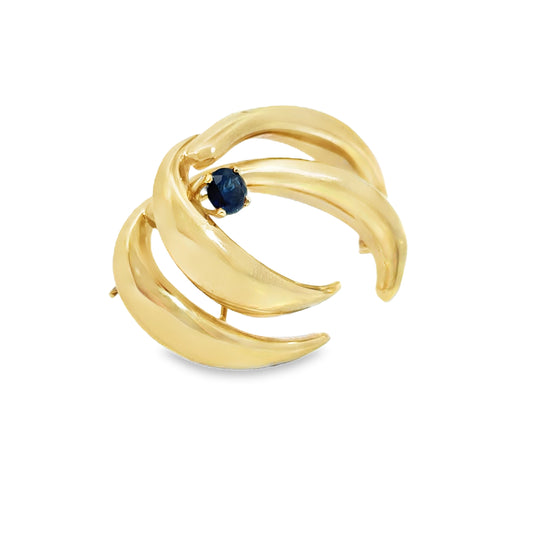 Unique 14K Yellow Gold & Sapphire Brooch