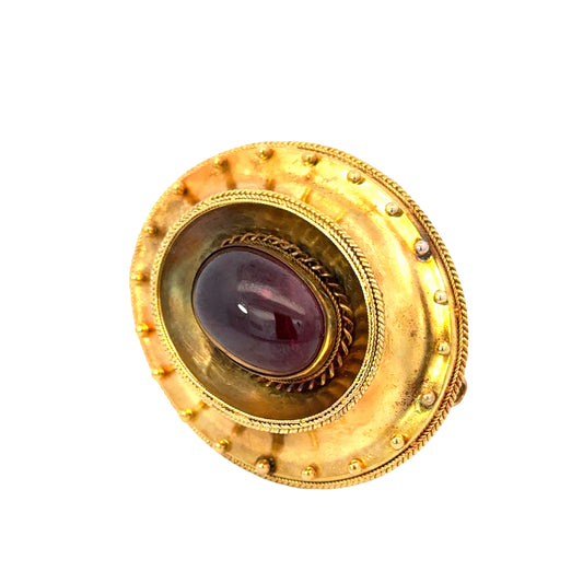 Unique Victorian 16K Yellow Gold Red Tourmaline Memento Brooch/Pendant