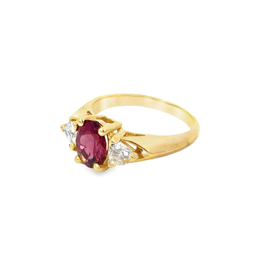 14K Yellow Gold Pink Tourmaline & White Sapphire Ring