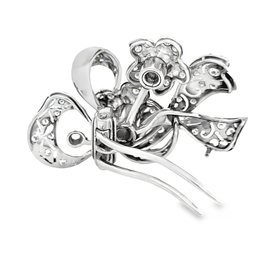 Beautiful Platinum & Diamond Flowers & Ribbons Brooch