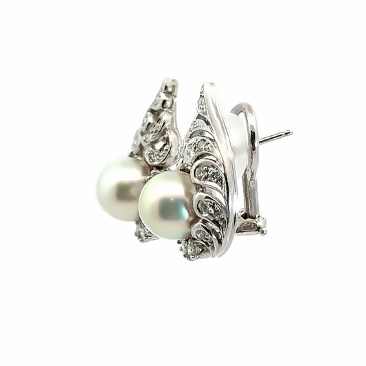 Beautiful Platinum Pearl & Diamond French-Clip Earrings
