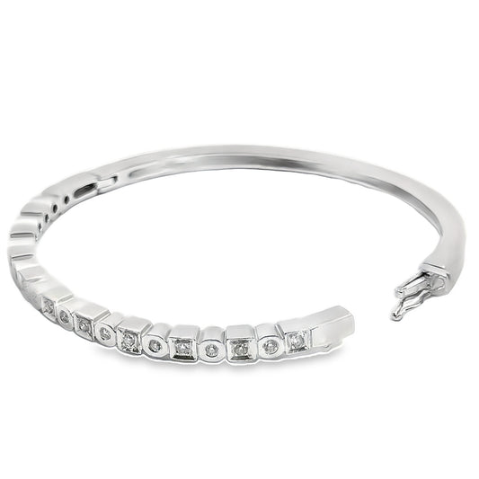 14K White Gold Multi-Row Bezel Set Diamond Cuff Bangle