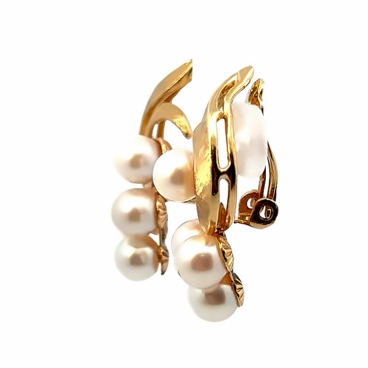 14K Yellow Gold Leaves & Pearl Cluster Clip-On Earrings