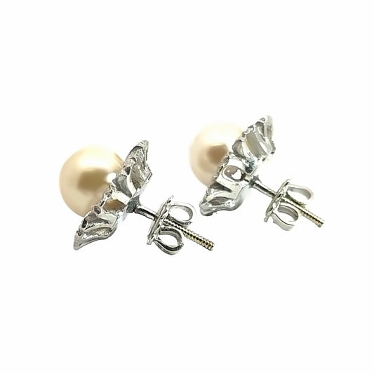 18K White Gold Pearl Flower Screw-Back Earrings