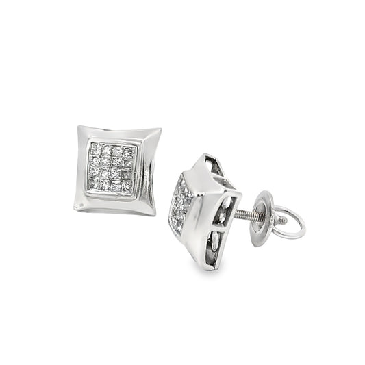 14K White Gold Square Diamond Stud Earrings