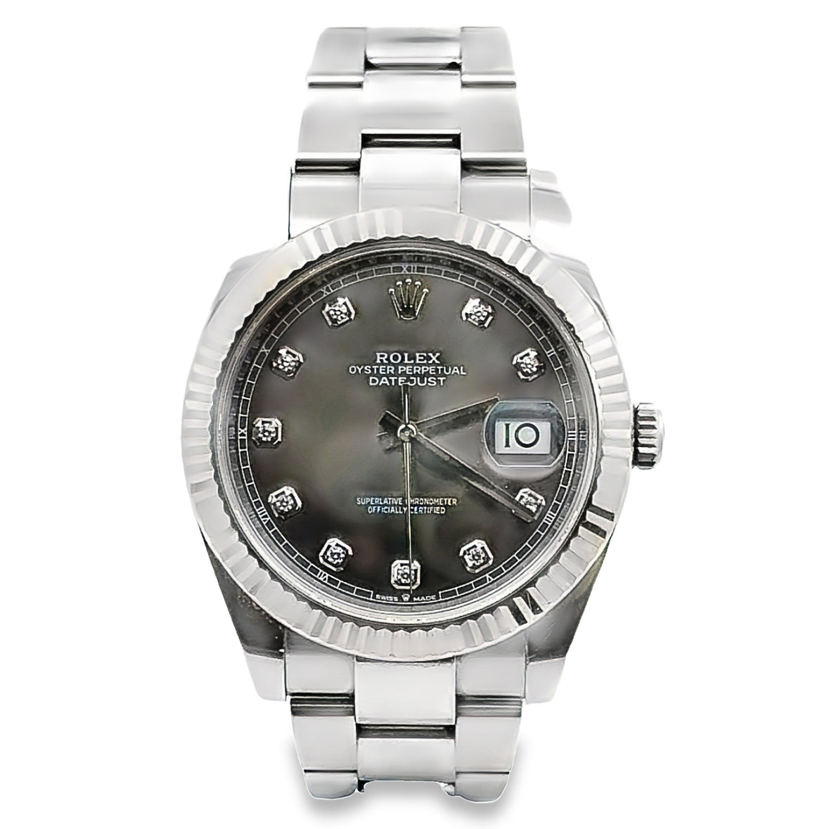 | 41 Steel Rhodium Diamond Dial Fluted Bezel Oyster Bracelet 41mm, Gray Dial, Original Box |