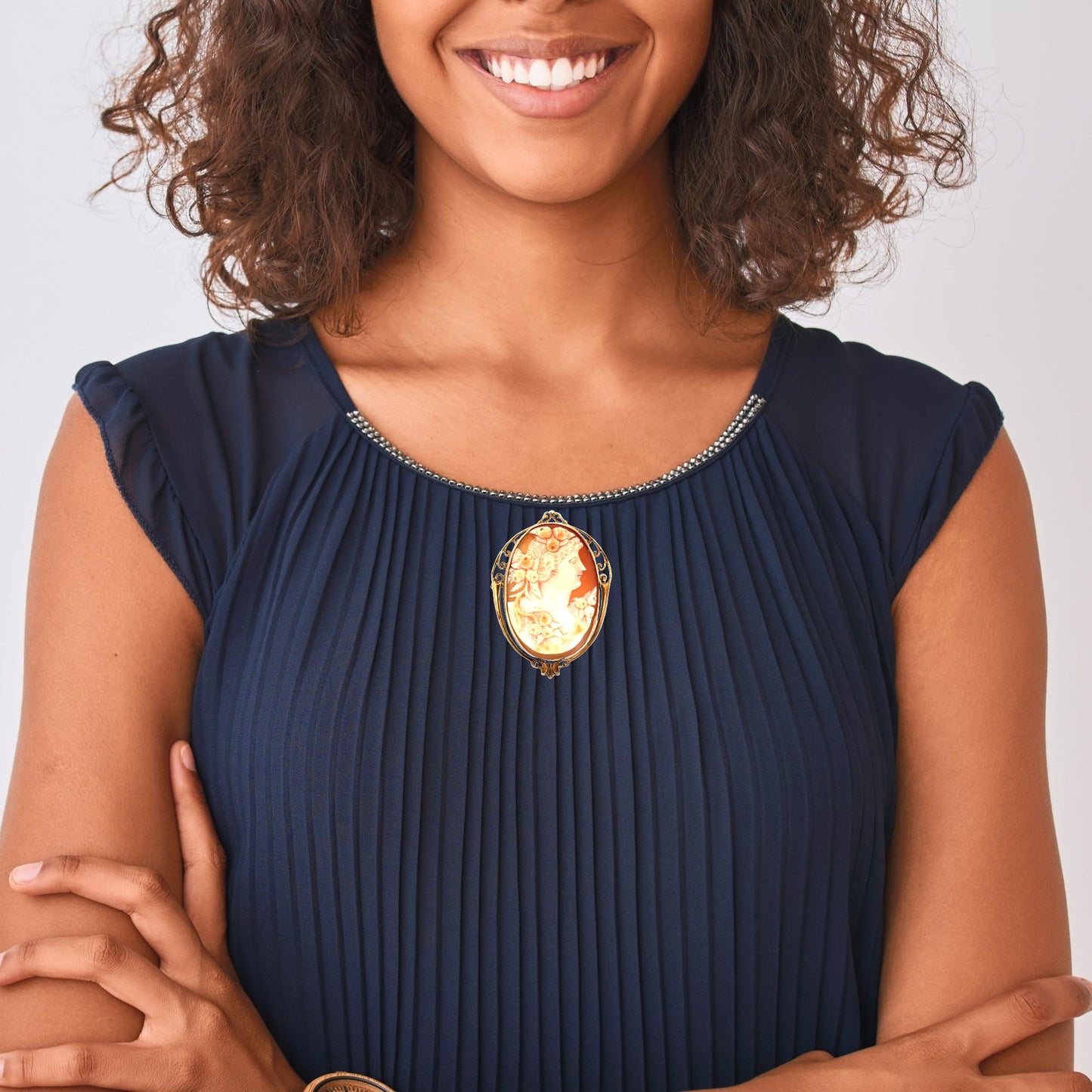 Exceptional Art Deco Yellow Gold Woman with Roses Cameo Brooch