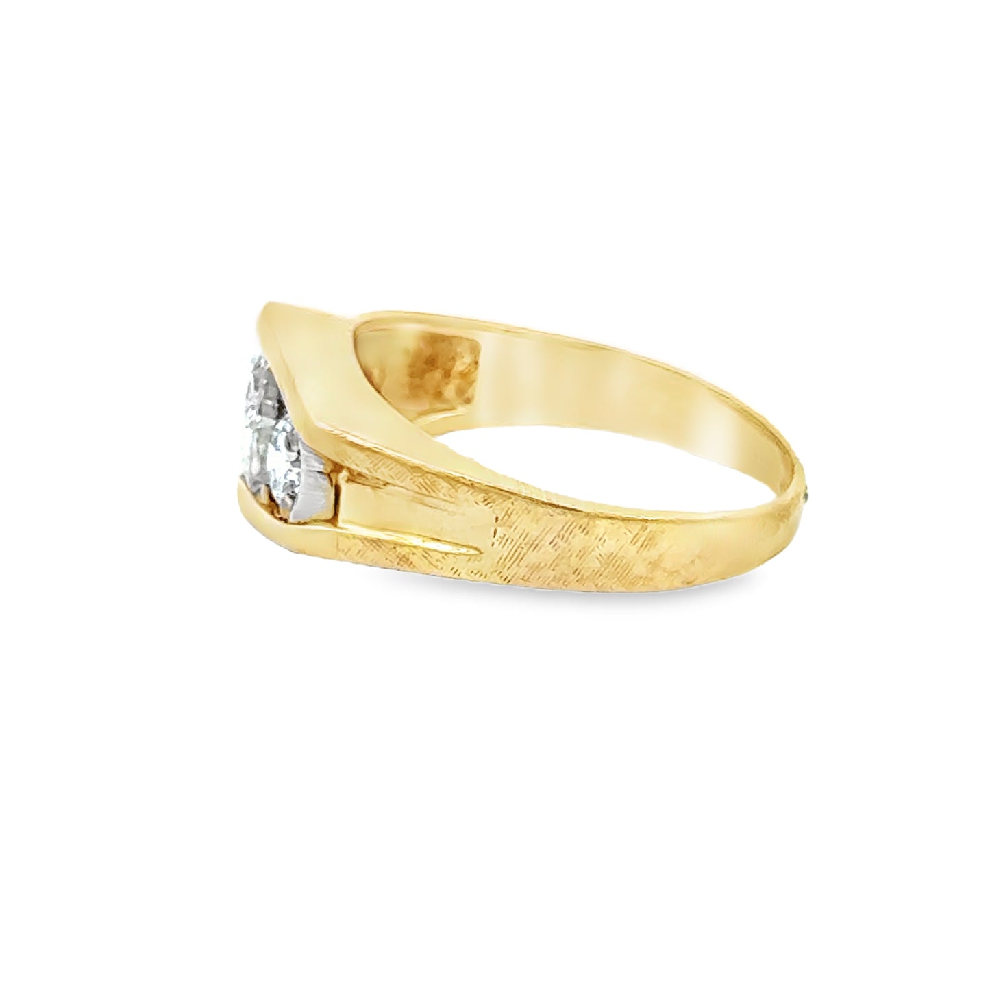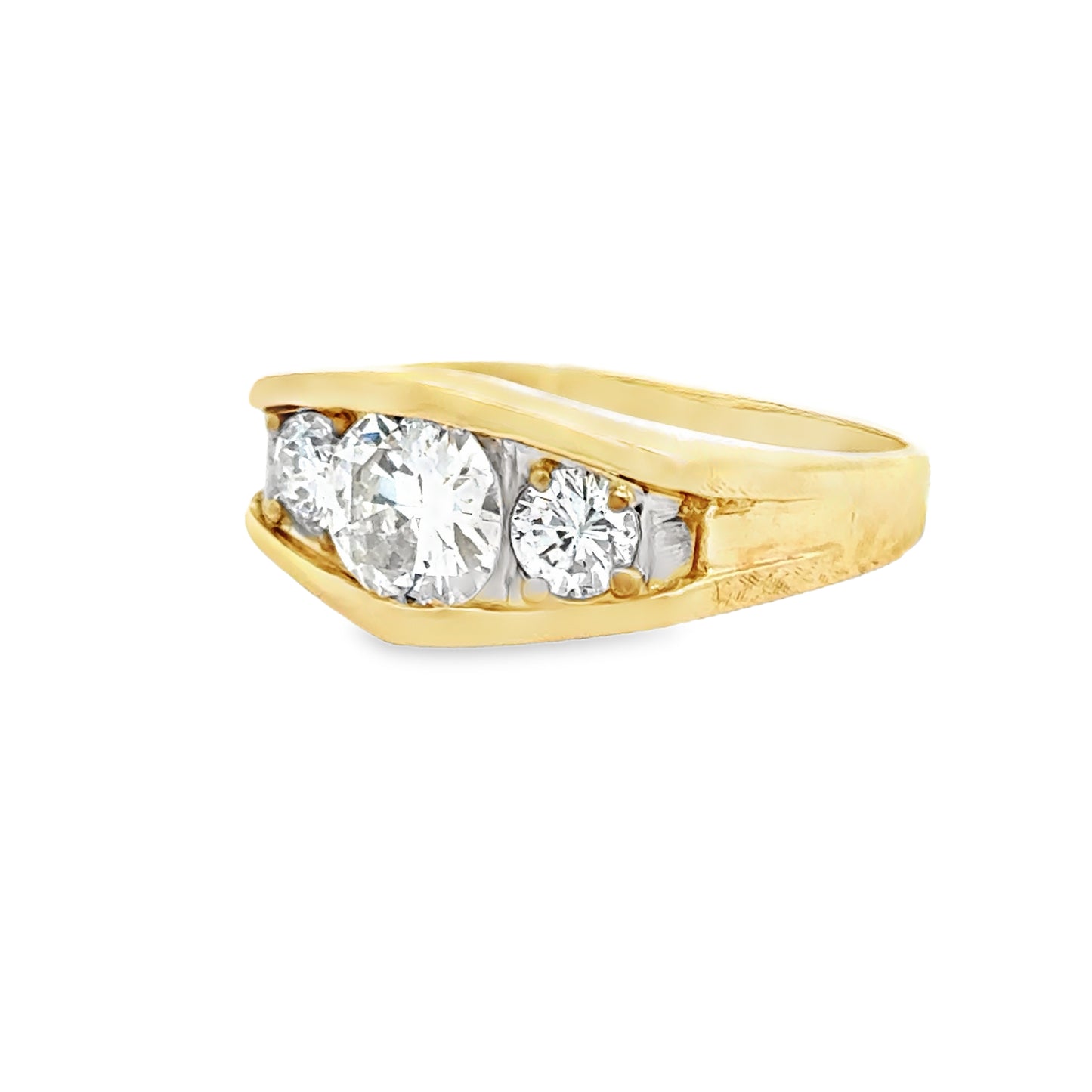 14K Textured Yellow Gold 3-Stone Diamond Men’s Ring