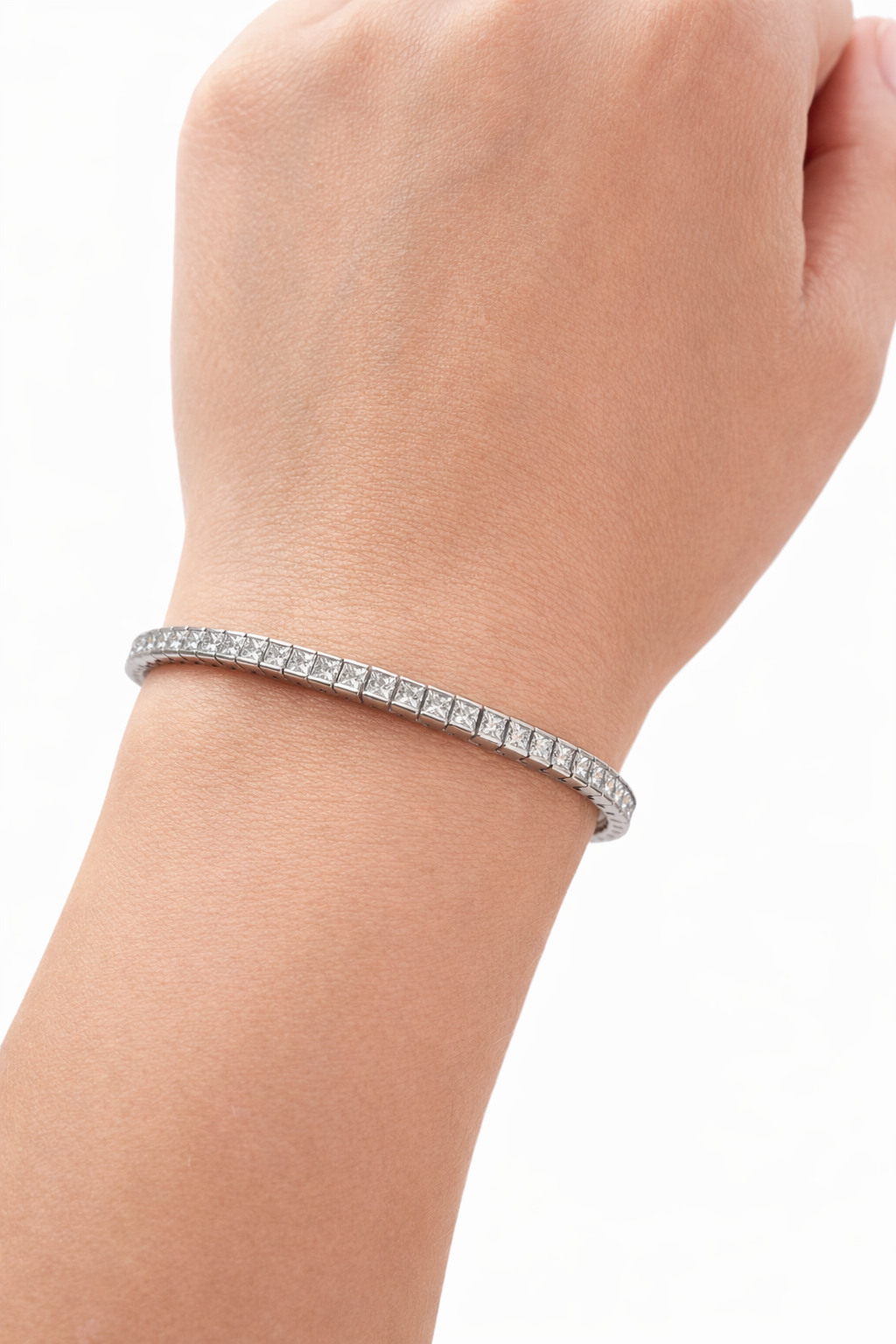Classic 14K White Gold Tennis Bracelet with Princess-Cut Diamonds