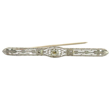 14K White Gold Art Deco Diamond Bar Pin