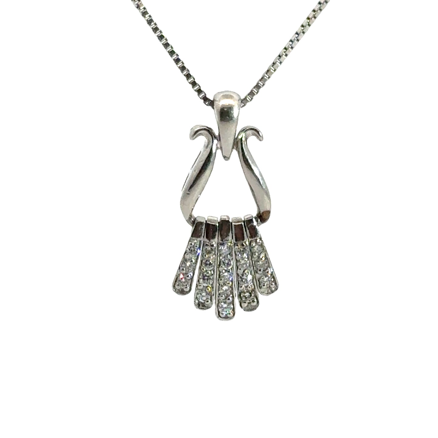 Fan Design 14K White Gold & Diamond Pendant