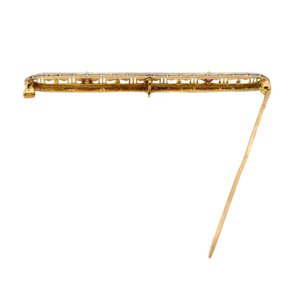 Art Deco 14K White & Yellow Gold Ruby & Diamond Bar Pin