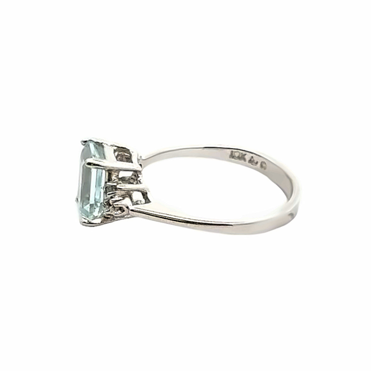 | 10K White Gold, Emerald-Cut Aquamarine, Round-Cut Diamonds Approx.0.06ct., Size 7 | Approx. 2.5G |