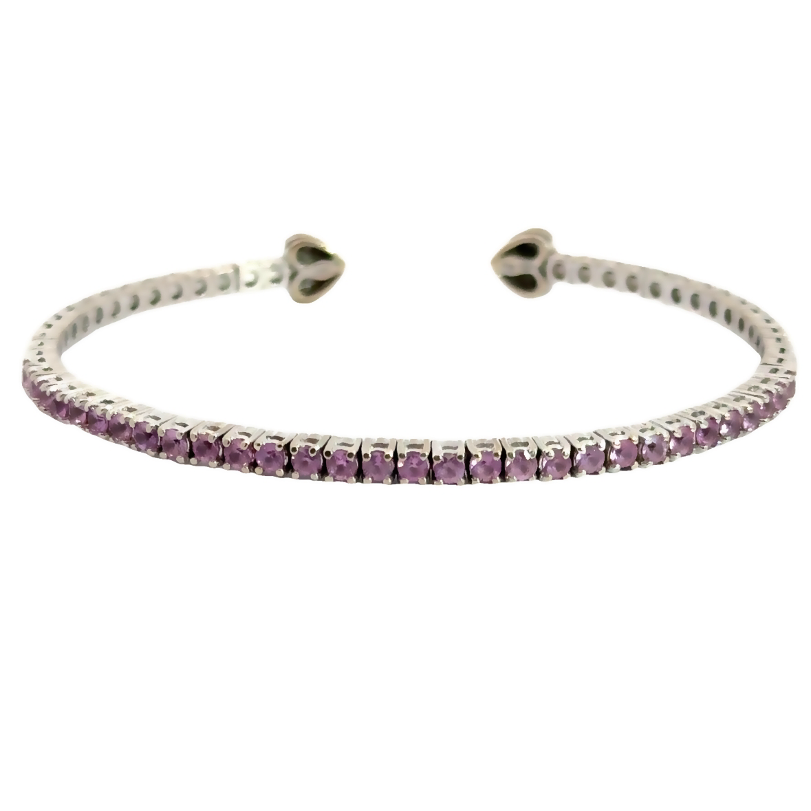 18K White Gold, Pink Sapphires, Flex Bangle, Hearts at the end of each post, 6” Matching citrine bangle available separately |
