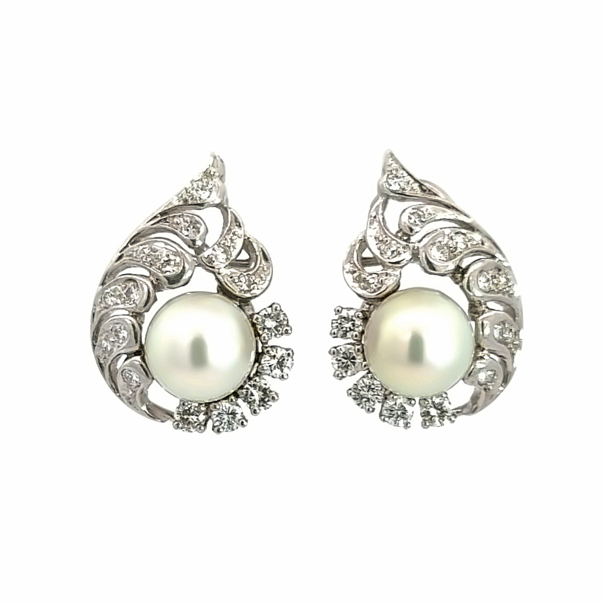 Beautiful Platinum Pearl & Diamond French-Clip Earrings