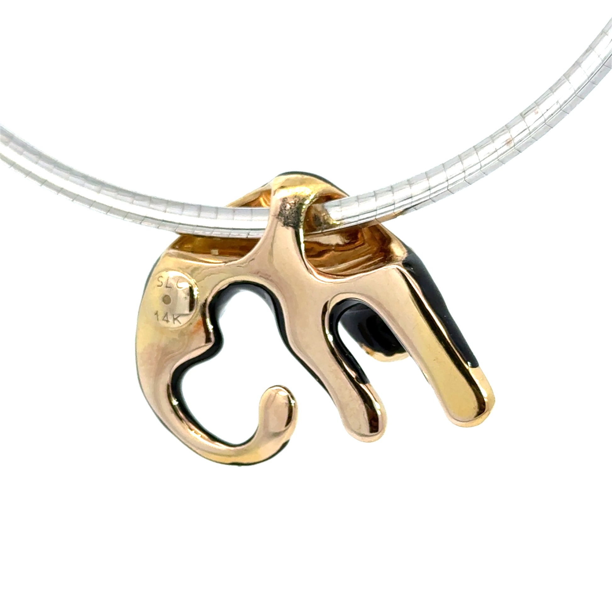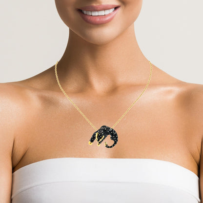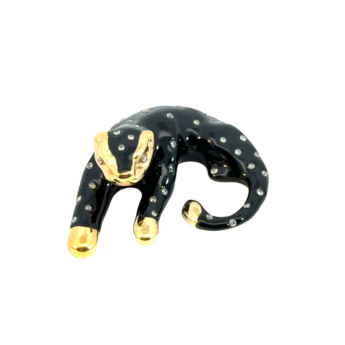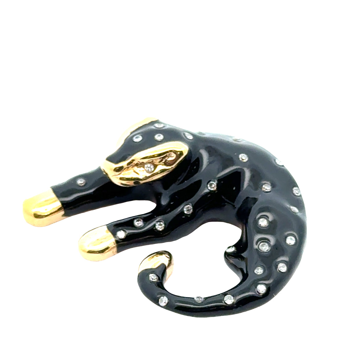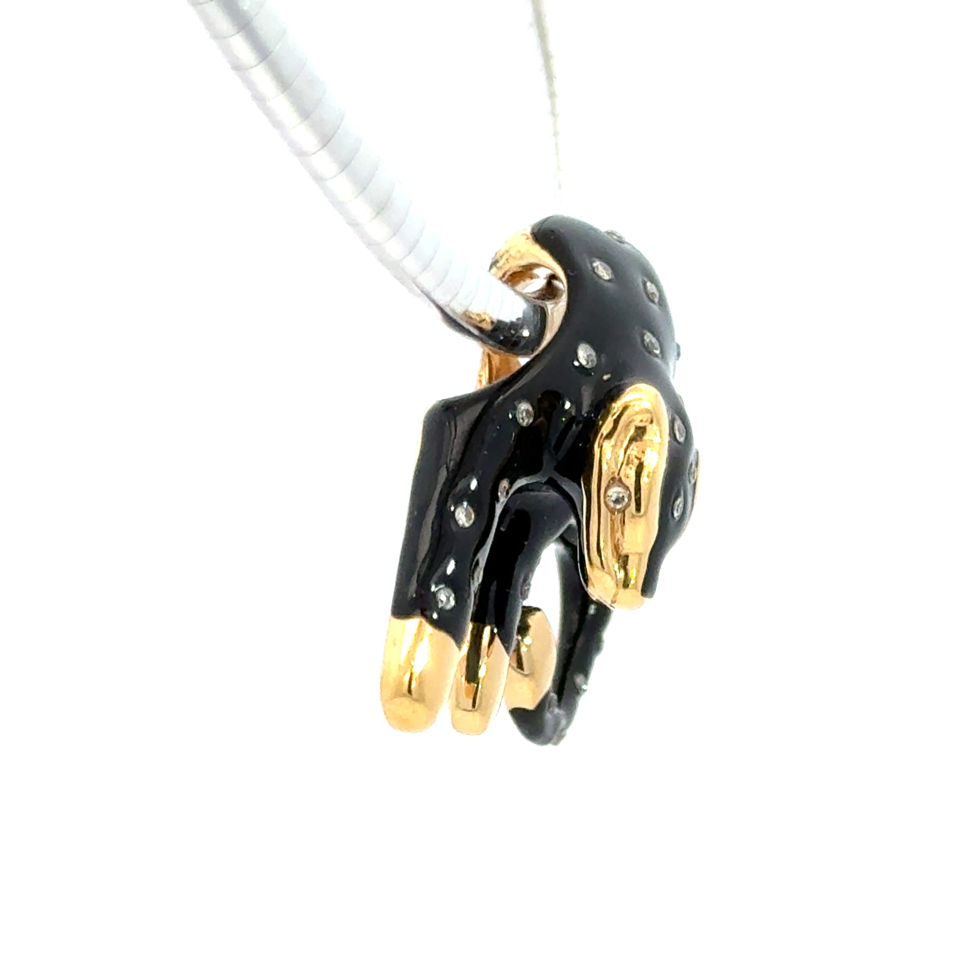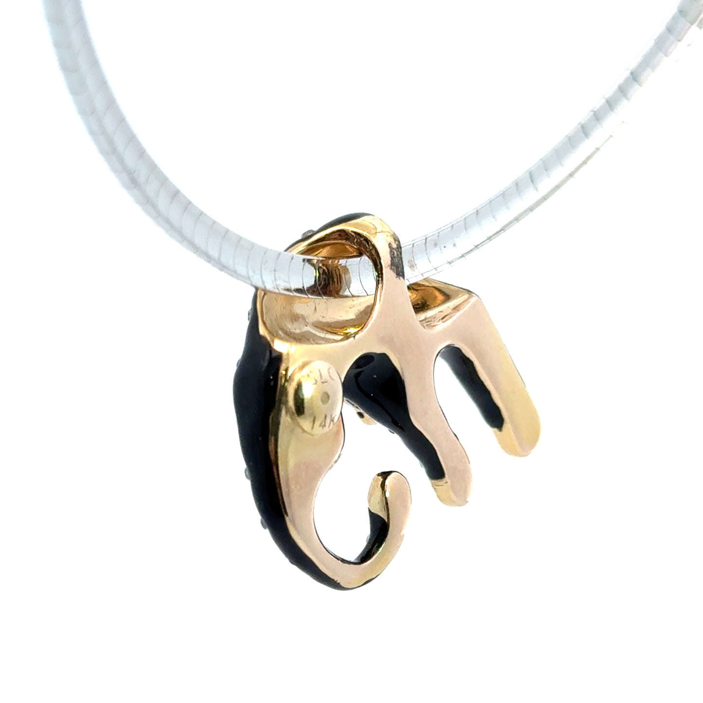 14K Yellow Gold Black Enamel Panther Pendant with Diamonds
