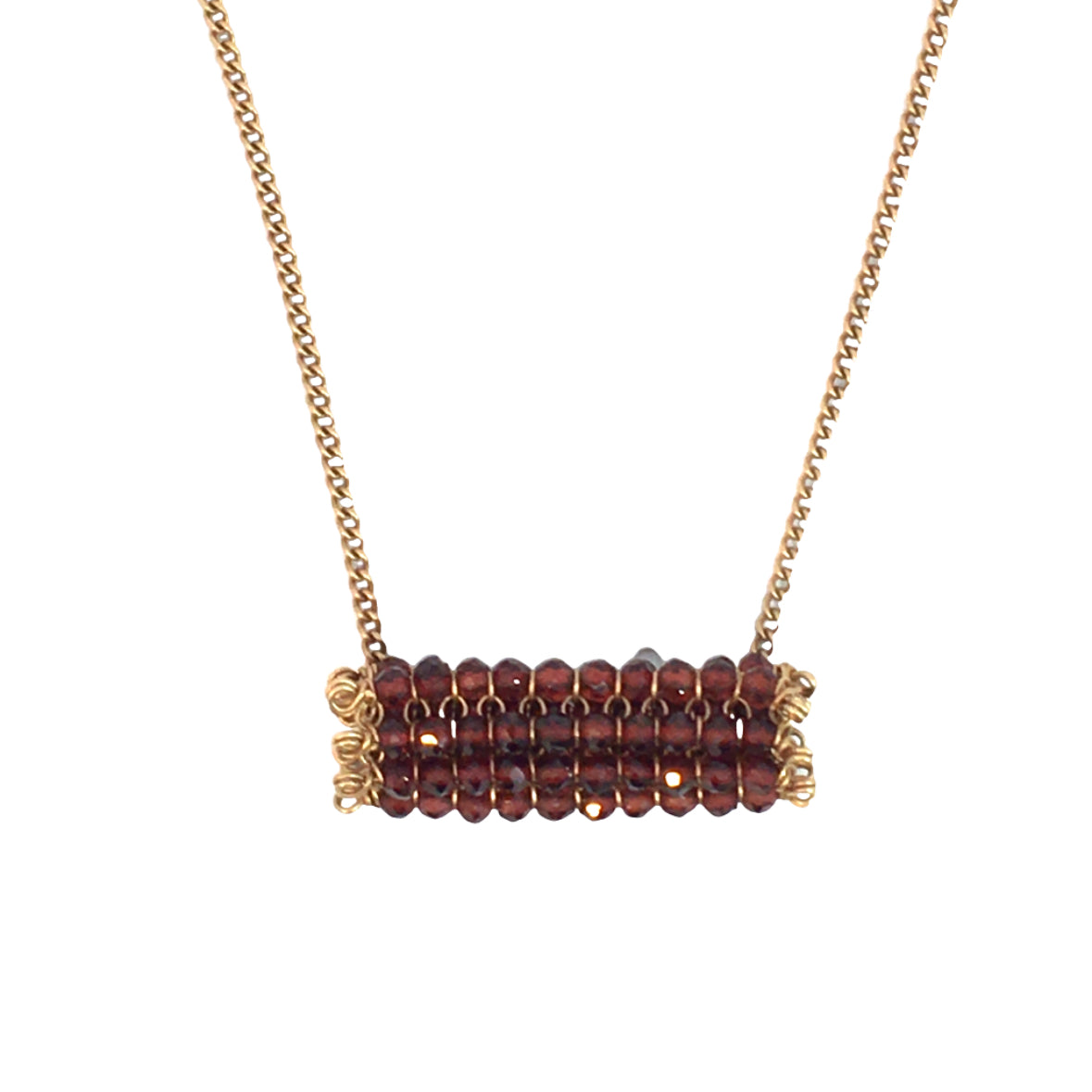 14K Yellow Gold, Garnet Beads, Hand Made, 15” Chain, Lobster Clasp |