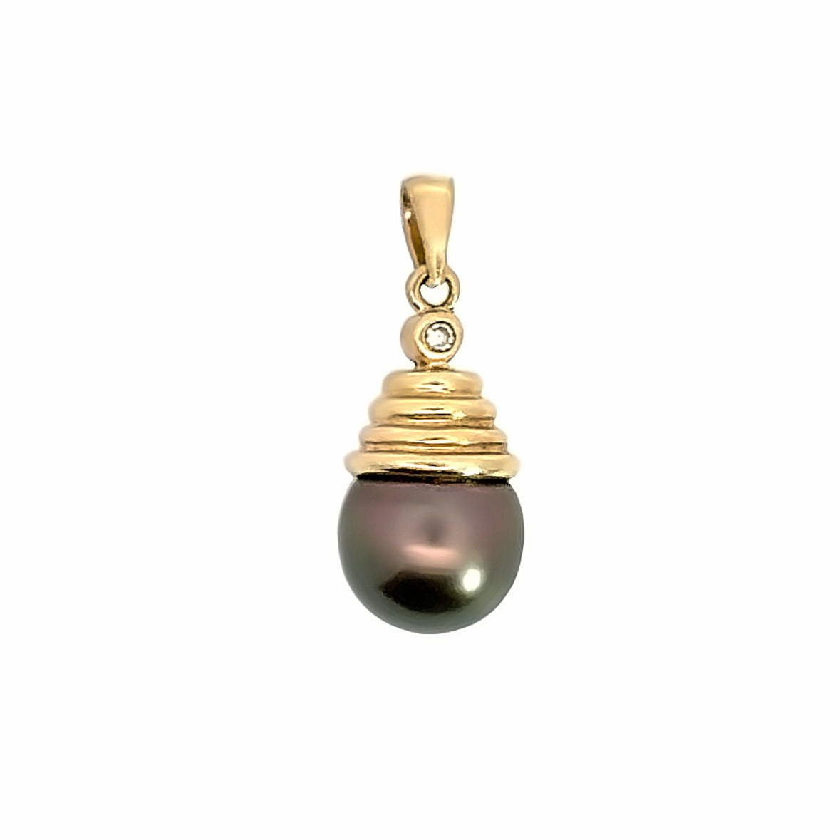 14K Yellow Gold Blue Tahitian Pearl & Diamond Pendant