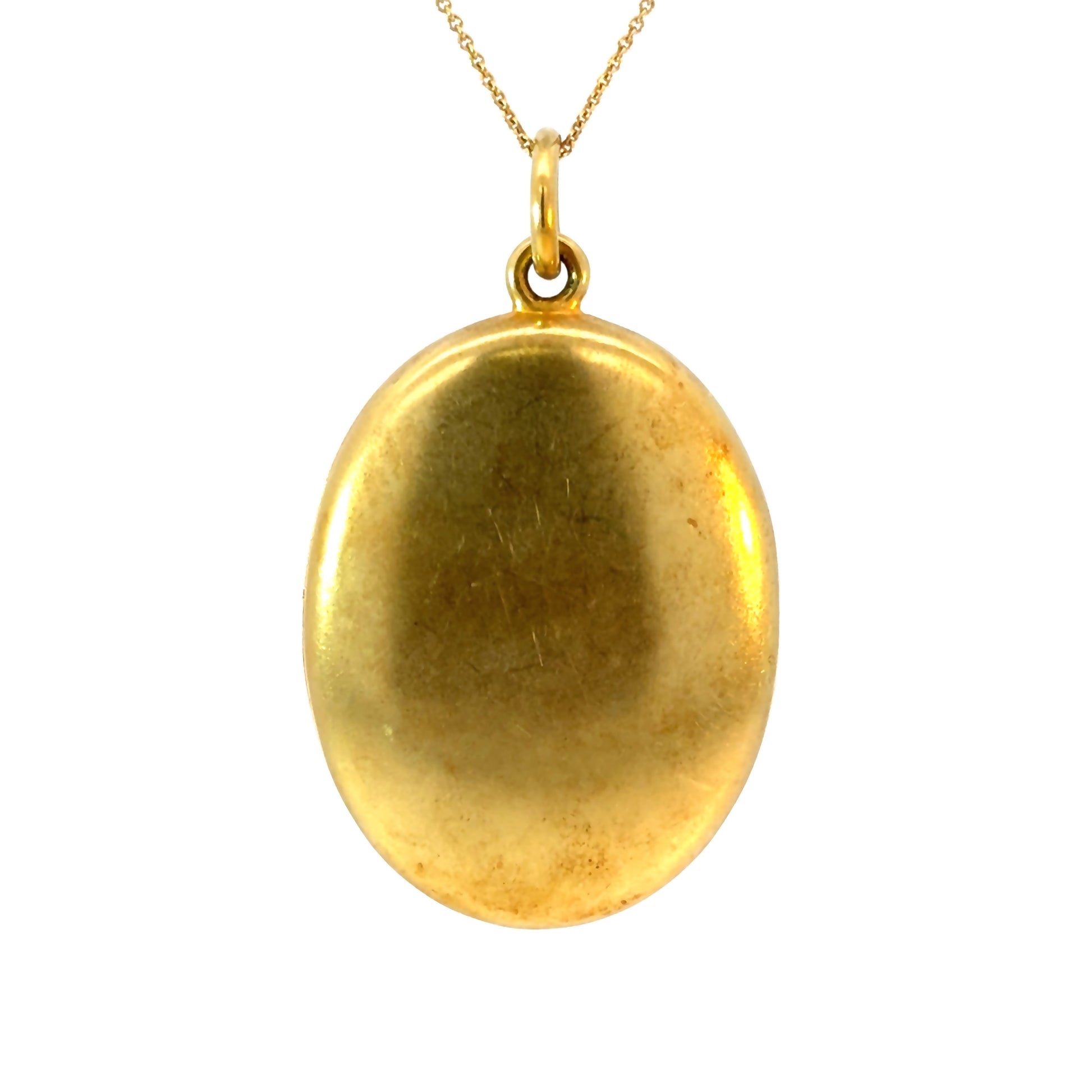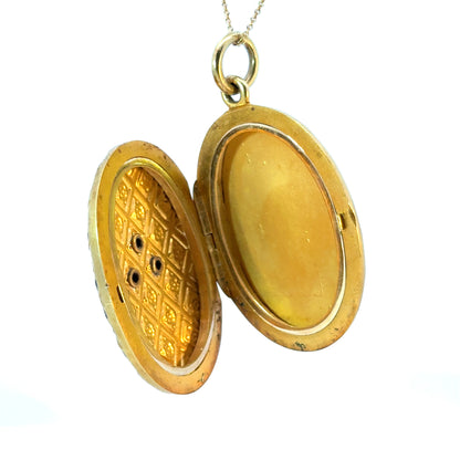 Antique 18K Yellow Gold Diamond & Black Enamel Locket Pendant