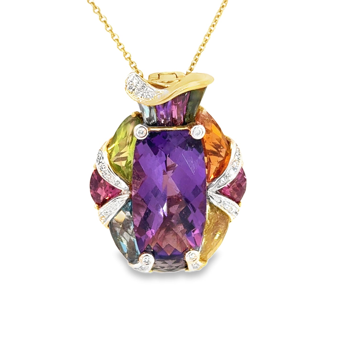18K Yellow & White Gold, Multi-Stone, Amethyst Center Stone, Diamonds, Approx.28x21mm, chain not included |