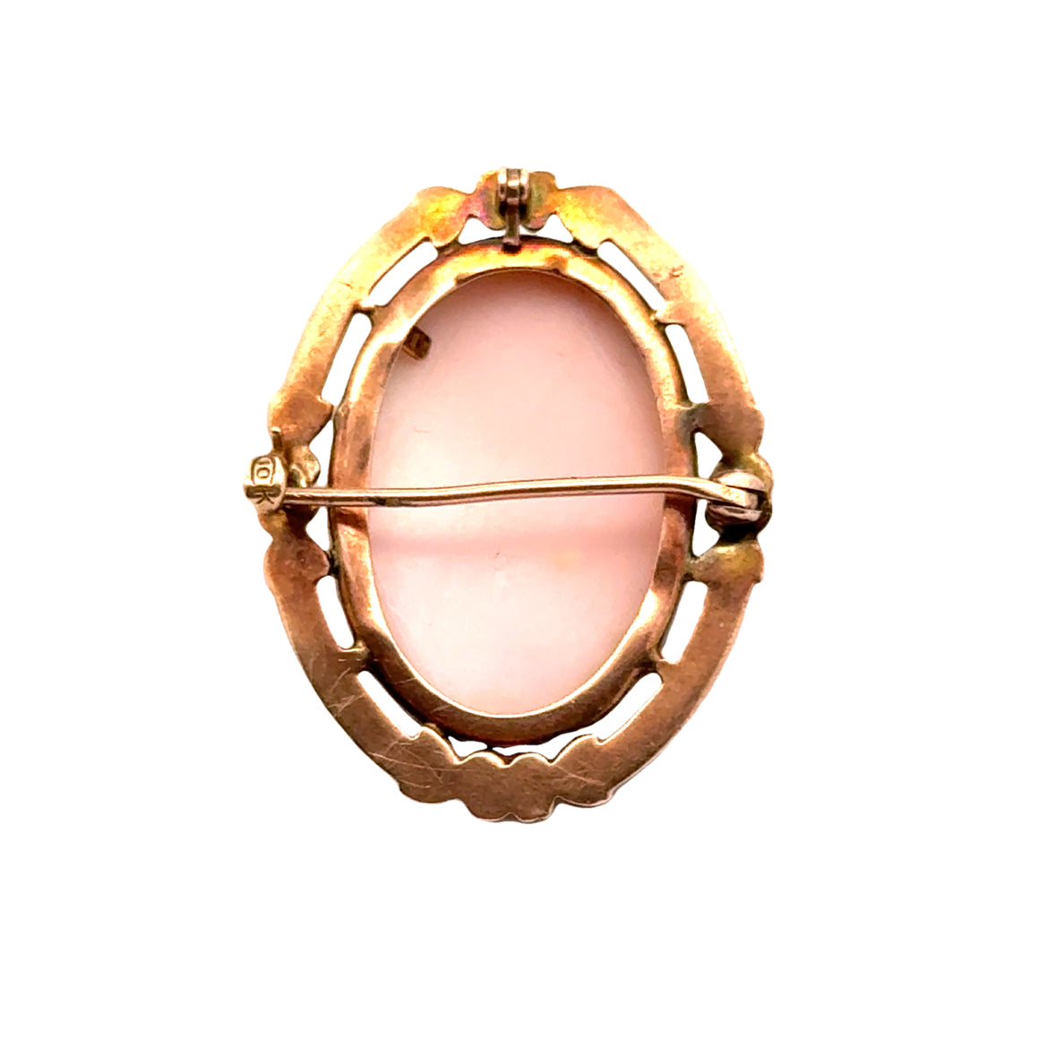 10K Yellow Gold, Approx.32x25mm, Cameo, Pink Shell, Hand Carved, 1920’s |